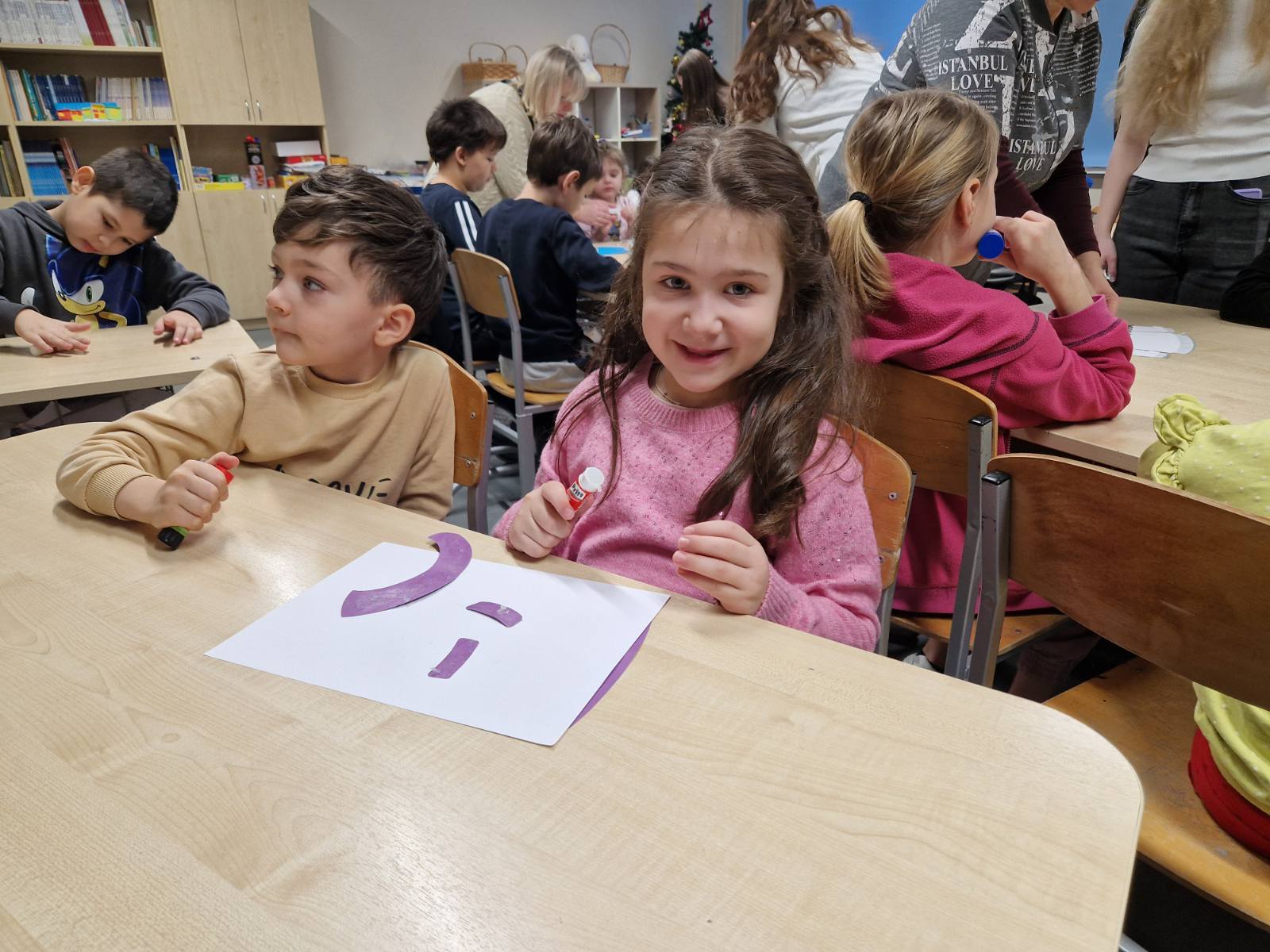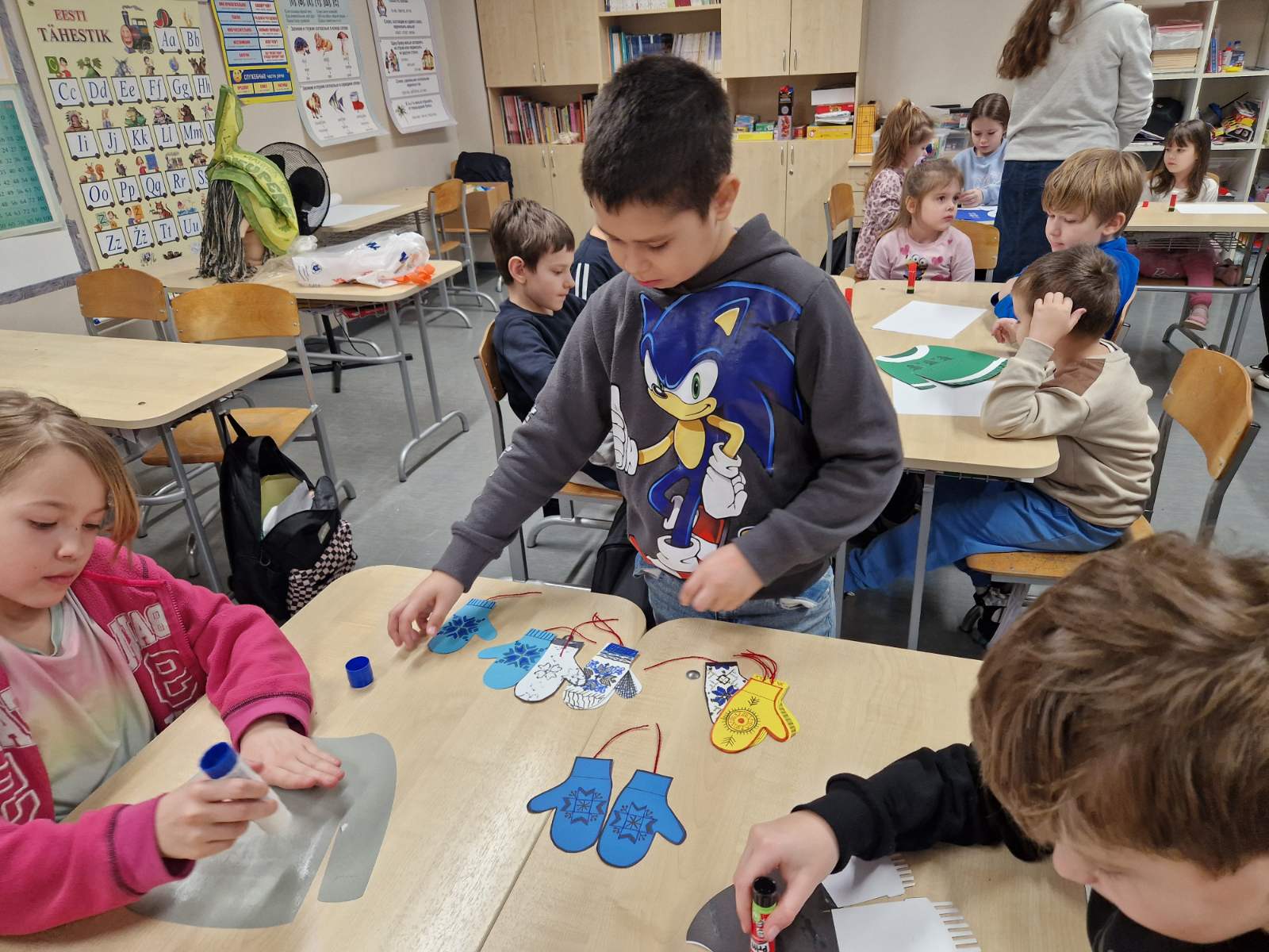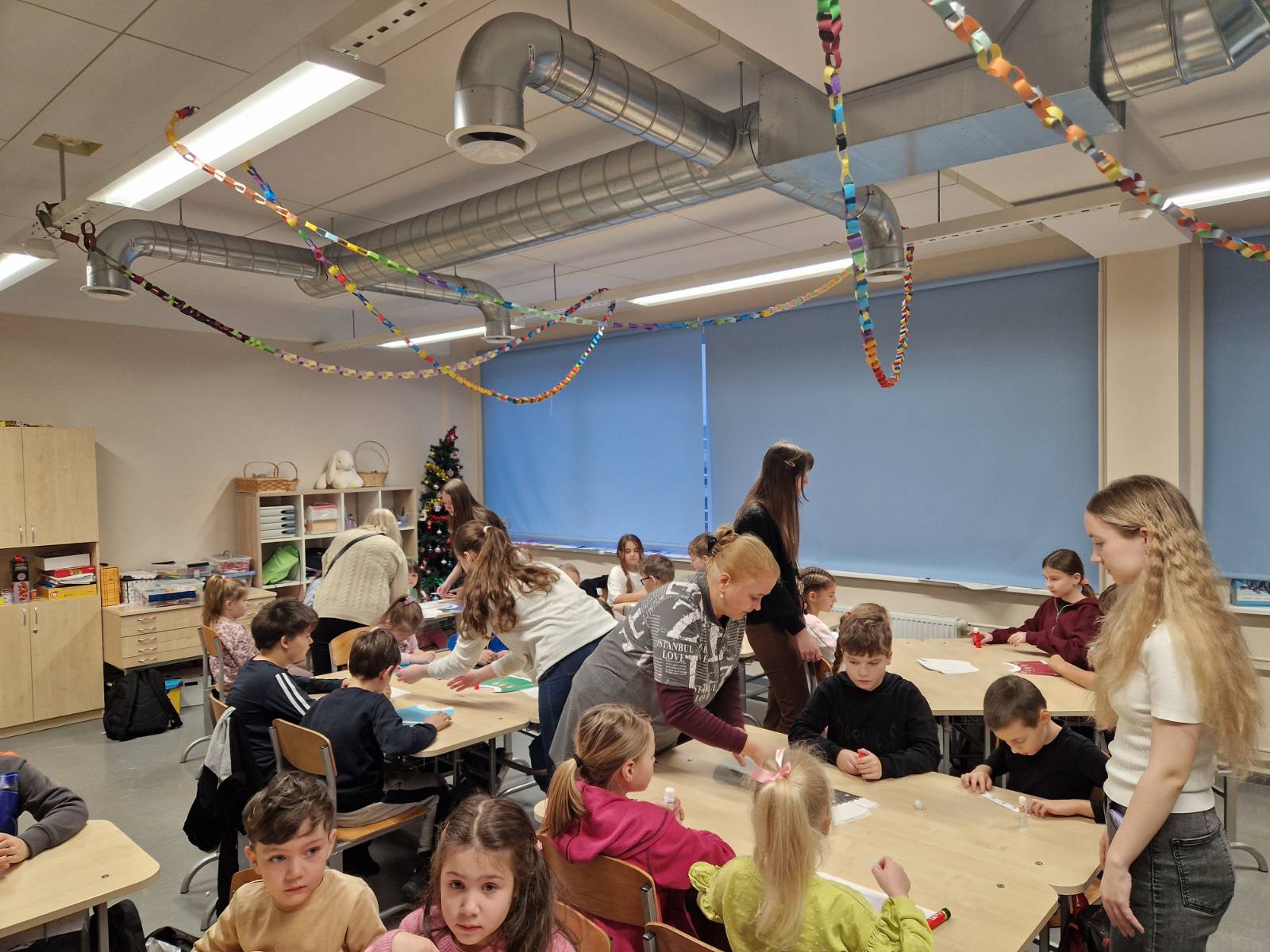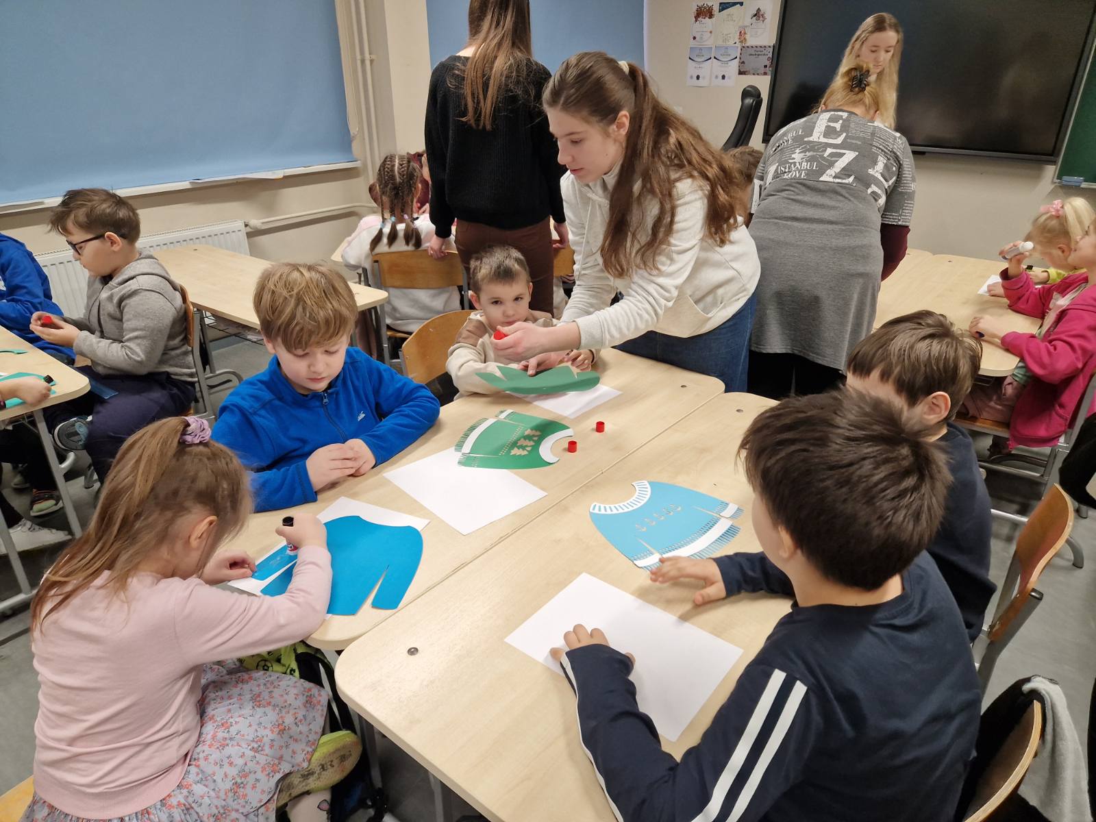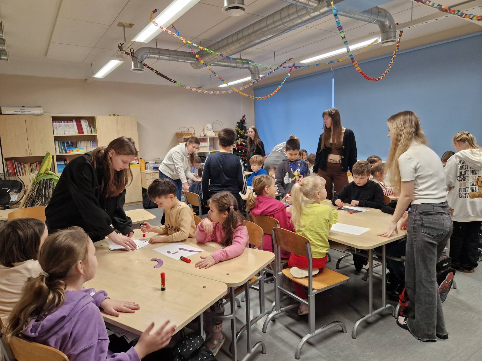 Noorematele kooliõpilastele ja lasteaialastele olid abiks ka 9A ja 9C klassi tüdrukud, kes toetasid väiksemaid meisterdamisel. Päeva lõpus said lasteaialapsed kingituseks eestikeelsed värviraamatud, meie kooli õpilased aga väikese šokolaadi magusaks tänutäheks🍫📖
